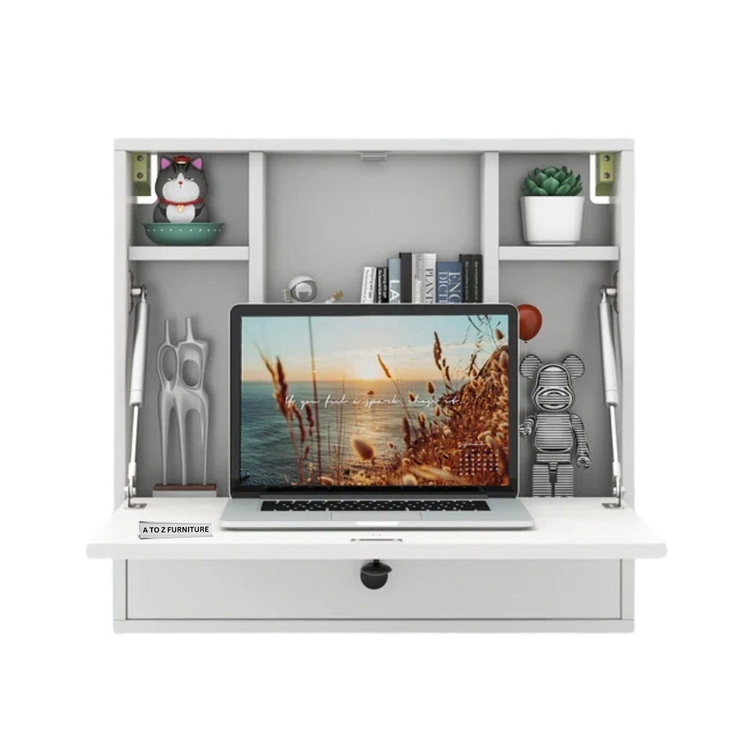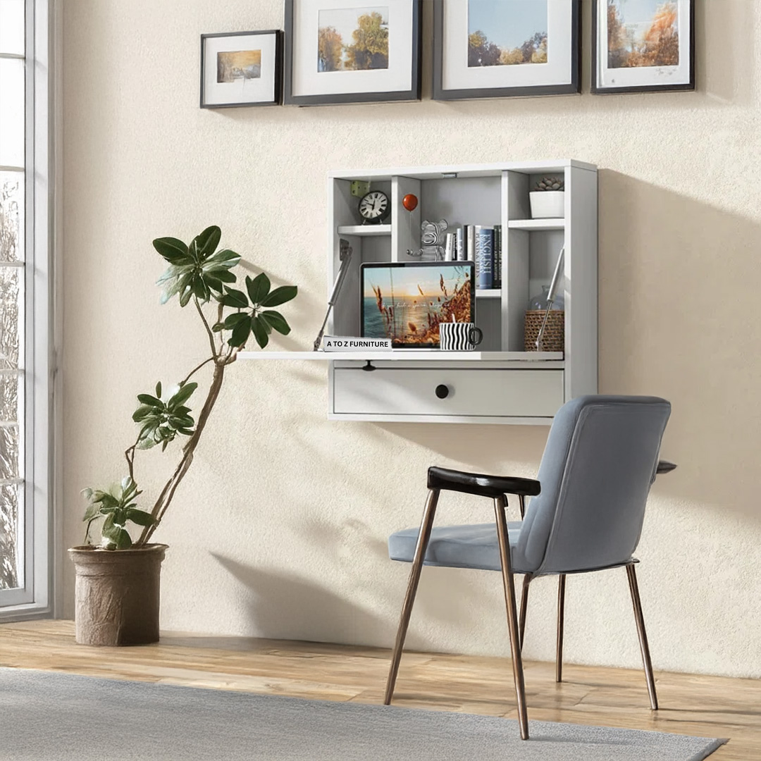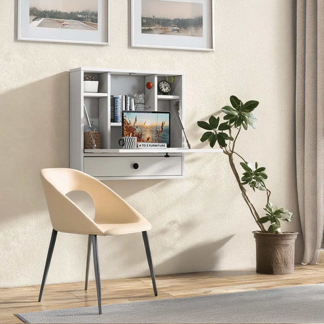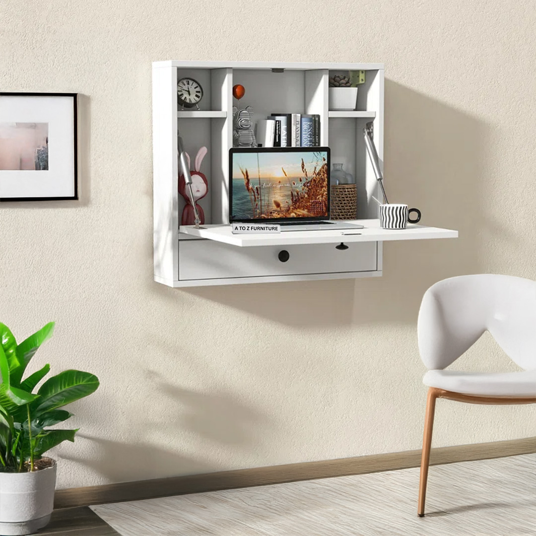 Smart, sleek, and space-saving — the Fold Wall Desk is your ideal companion for compact living in UAE homes. This modern floating desk folds down to reveal a generous work surface and built-in cubby storage, perfect for working, writing, or studying. When not in use, simply close the panel to keep your space clean and clutter-free. With its crisp white finish and organized layout, this is a stylish addition to bedrooms, hallways, or home offices.