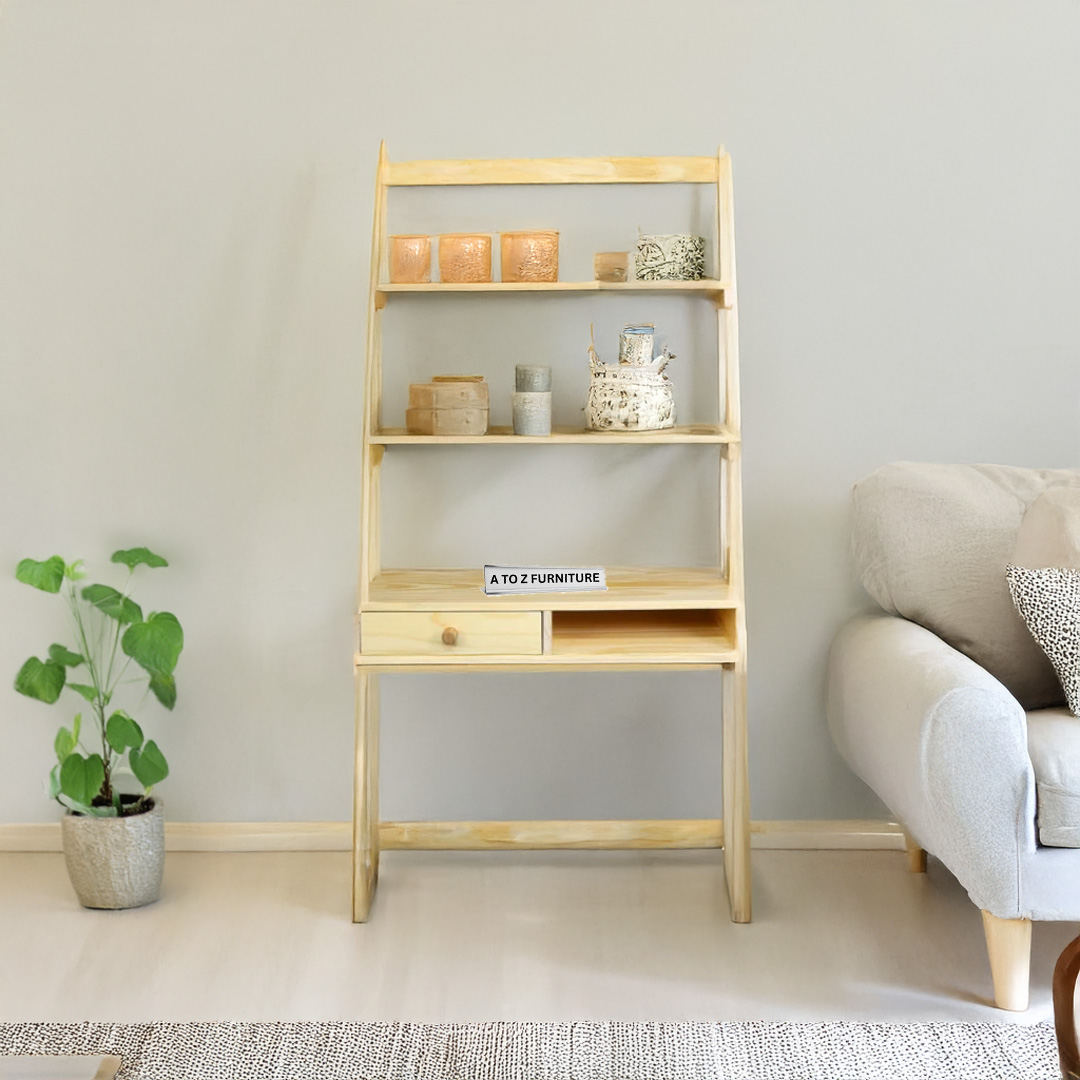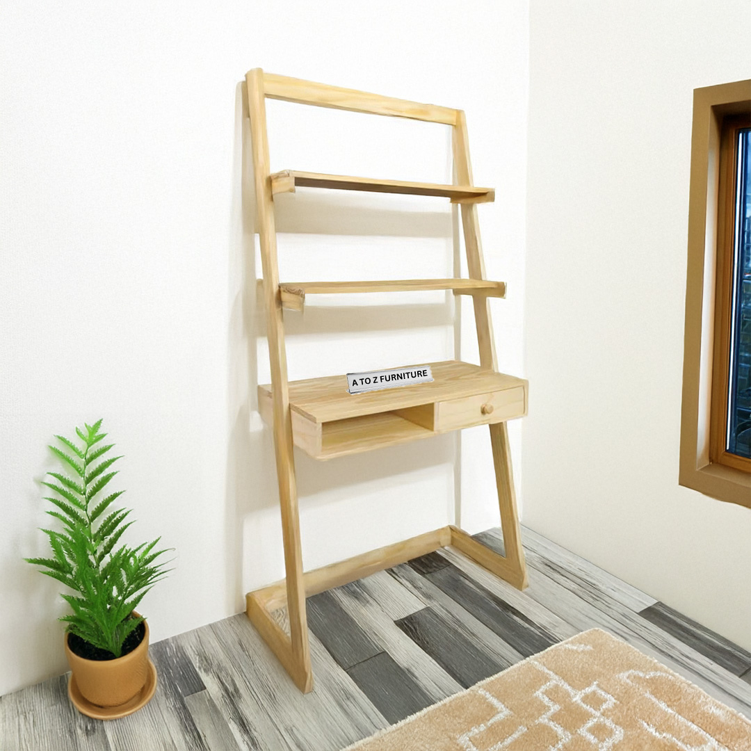 Brighten any corner with the Aurora Leaning Desk — a sleek, vertical workspace ideal for compact UAE homes. Crafted from kiln dried maple, it features a fresh white and natural two tone finish, offering a clean, minimalist look. The desk includes a spacious workspace, a convenient drawer, and two open upper shelves for books or décor. Its ladder style frame efficiently maximizes vertical space, while anti-tip hardware ensures safety. Aurora combines timeless design with modern utility for students, professionals, or creatives.