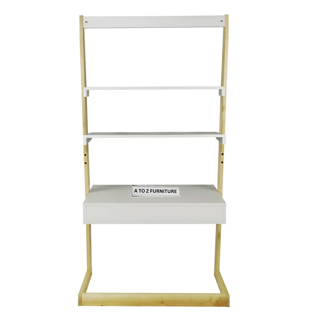 Brighten any corner with the Aurora Leaning Desk — a sleek, vertical workspace ideal for compact UAE homes. Crafted from kiln dried maple, it features a fresh white and natural two tone finish, offering a clean, minimalist look. The desk includes a spacious workspace, a convenient drawer, and two open upper shelves for books or décor. Its ladder style frame efficiently maximizes vertical space, while anti-tip hardware ensures safety. Aurora combines timeless design with modern utility for students, professionals, or creatives.