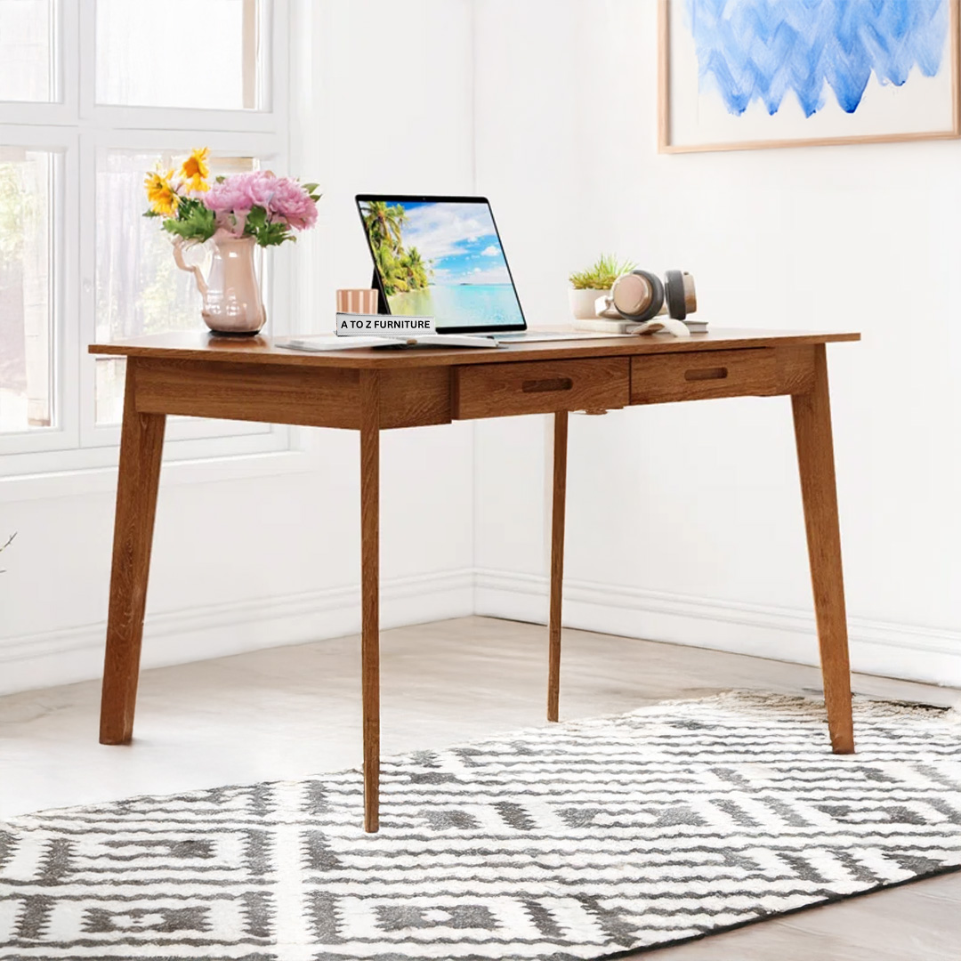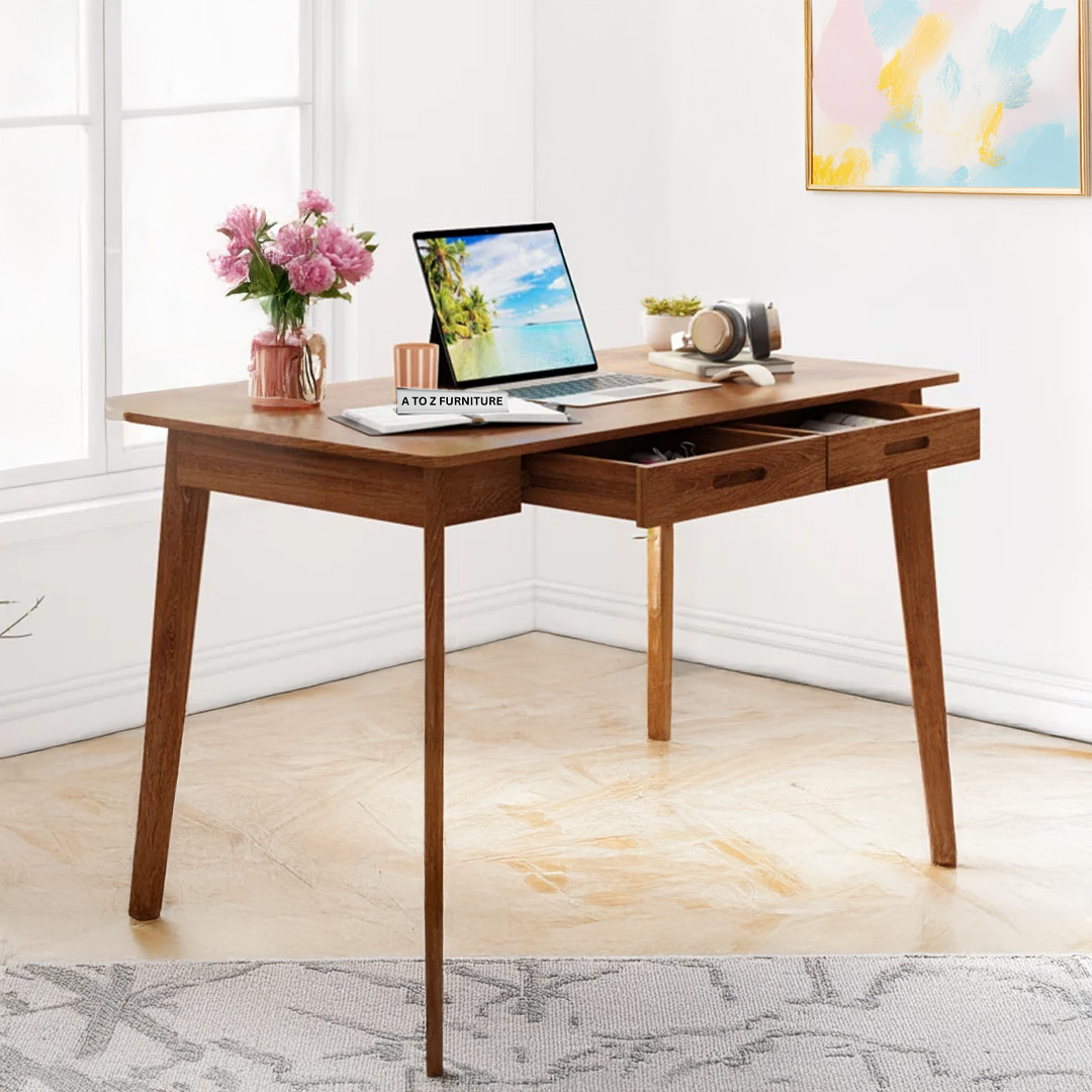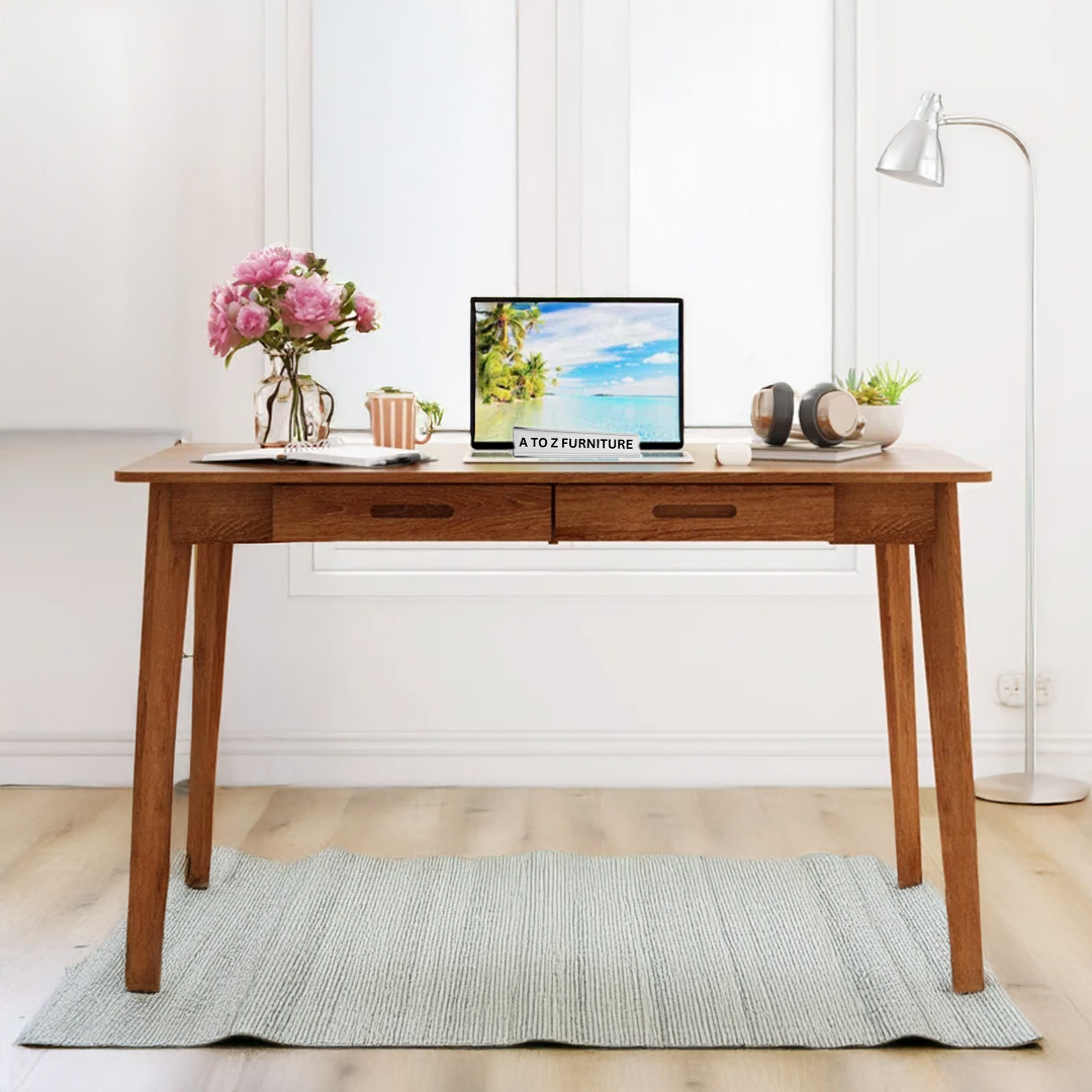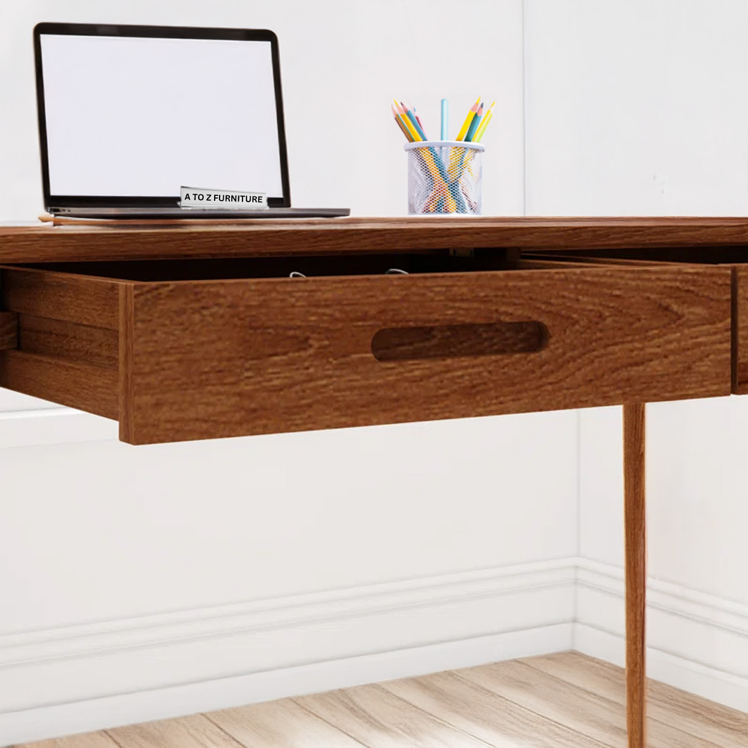 Elevate your workspace with the Caelo Retro Writing Desk, a timeless design inspired by mid-century minimalism.This desk adds a sophisticated touch to any home office, bedroom, or study corner. Its spacious tabletop and discreet drawer compartments offer both form and function, making it ideal for both productivity and style in modern UAE interiors.