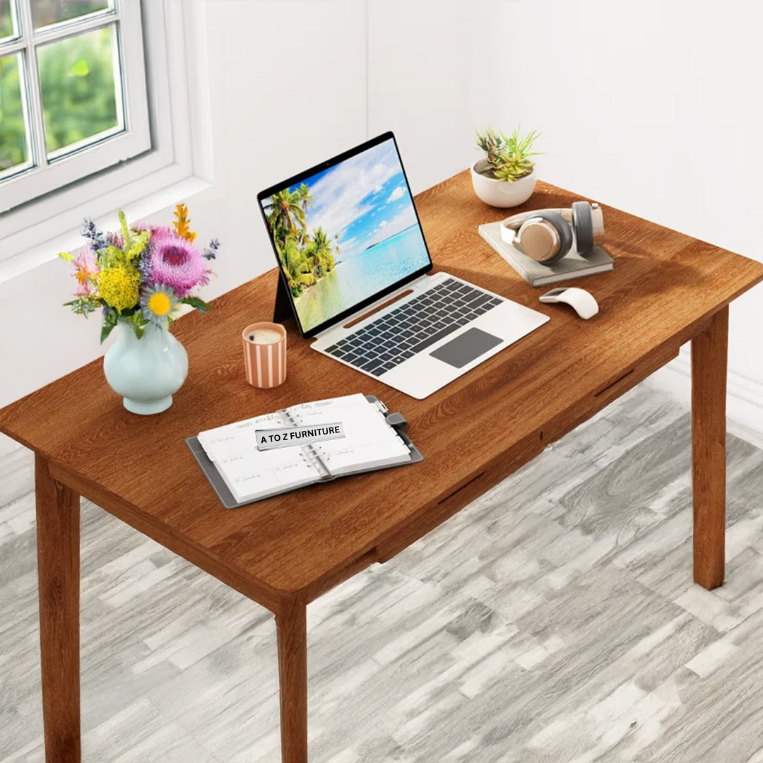 - Wide table top for laptop, books, or workspace essentials