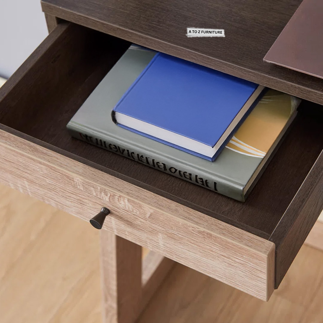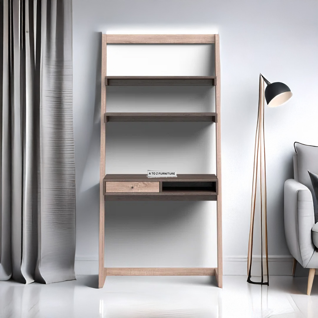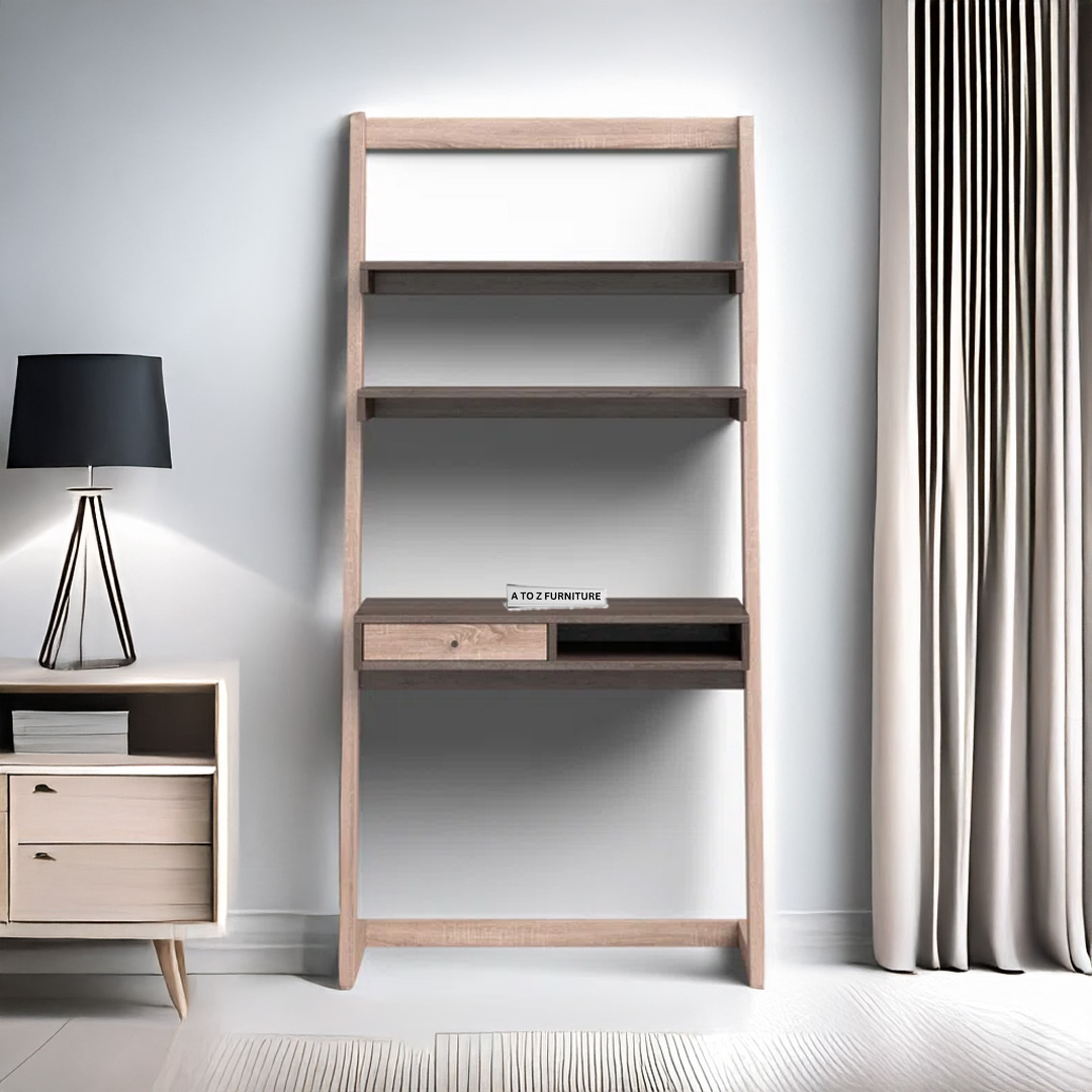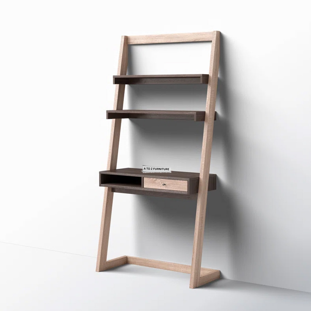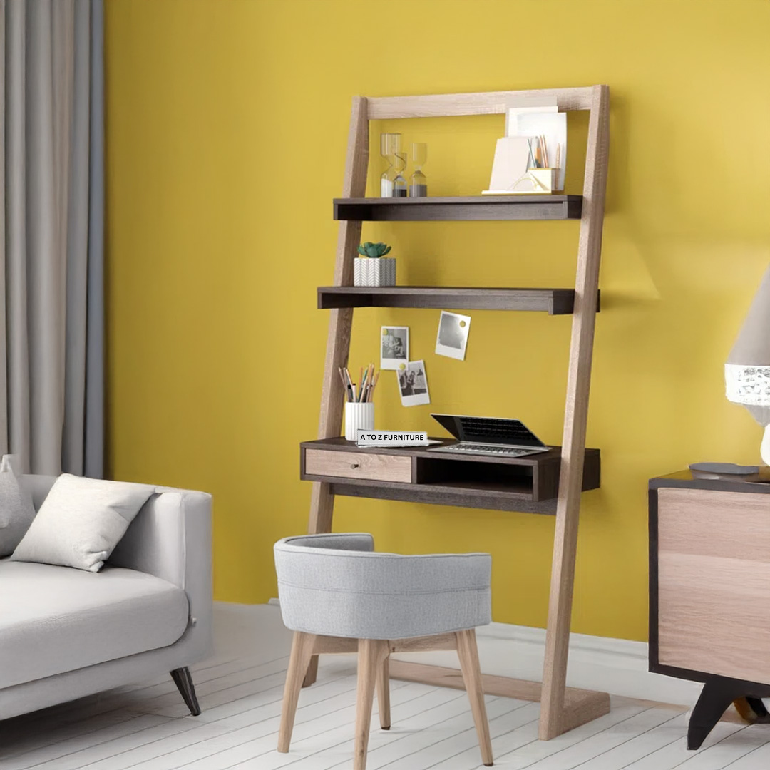 Elevate your home workspace with the Celestial Leaning Desk a harmonious blend of rustic charm and modern practicality. Featuring a sleek leaning ladder frame and two-tone solid mdf surfaces, this desk saves precious floor space while offering desktop, shelf, and drawer storage. Its clean sled base and angled supports provide stability and style, making it ideal for UAE homes, student rooms, or compact offices. Equipped with built-in cable management and ready-to-assemble delivery, it's the perfect space-saving star for modern living.