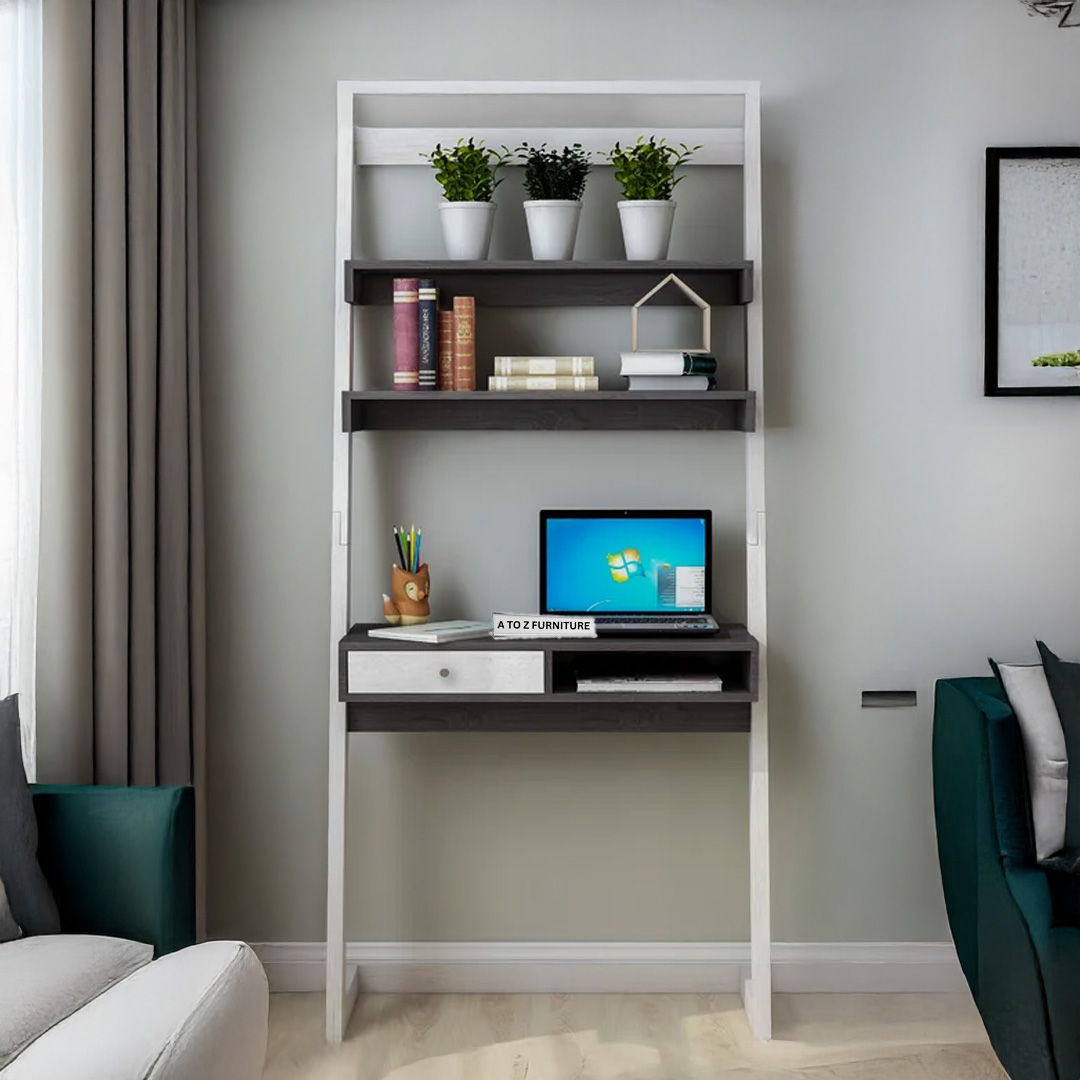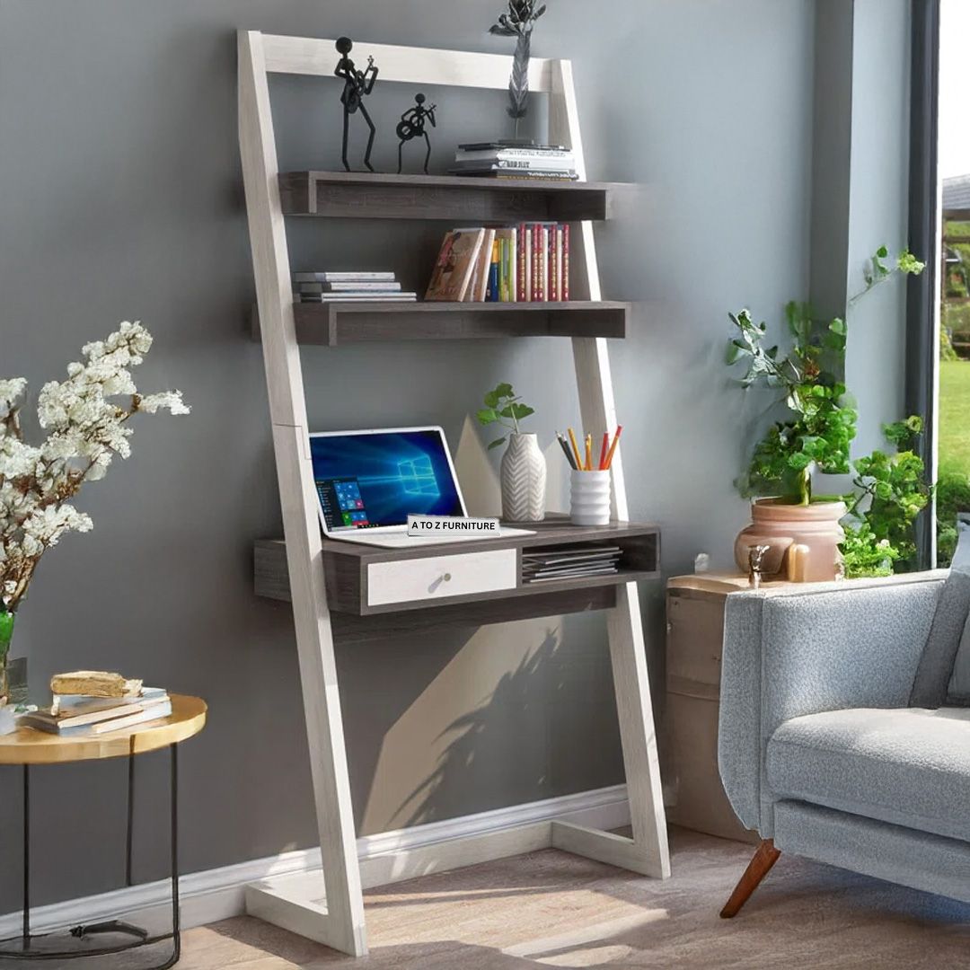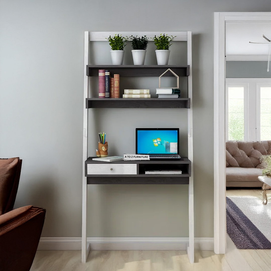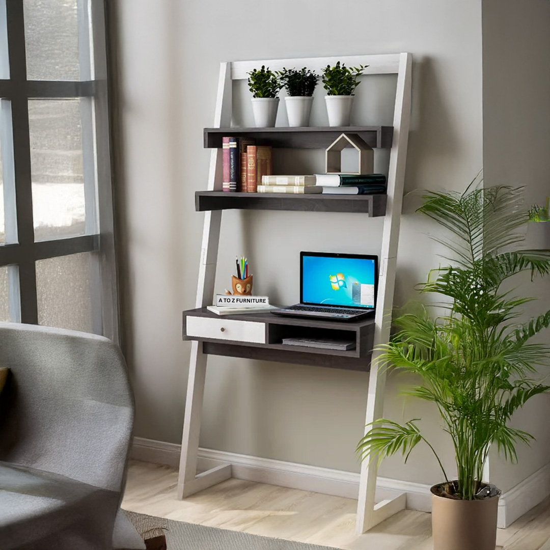 Elevate your home workspace with the Celestial Leaning Desk a harmonious blend of rustic charm and modern practicality. Featuring a sleek leaning ladder frame and two-tone solid mdf surfaces, this desk saves precious floor space while offering desktop, shelf, and drawer storage. Its clean sled base and angled supports provide stability and style, making it ideal for UAE homes, student rooms, or compact offices. Equipped with built-in cable management and ready-to-assemble delivery, it's the perfect space-saving star for modern living.