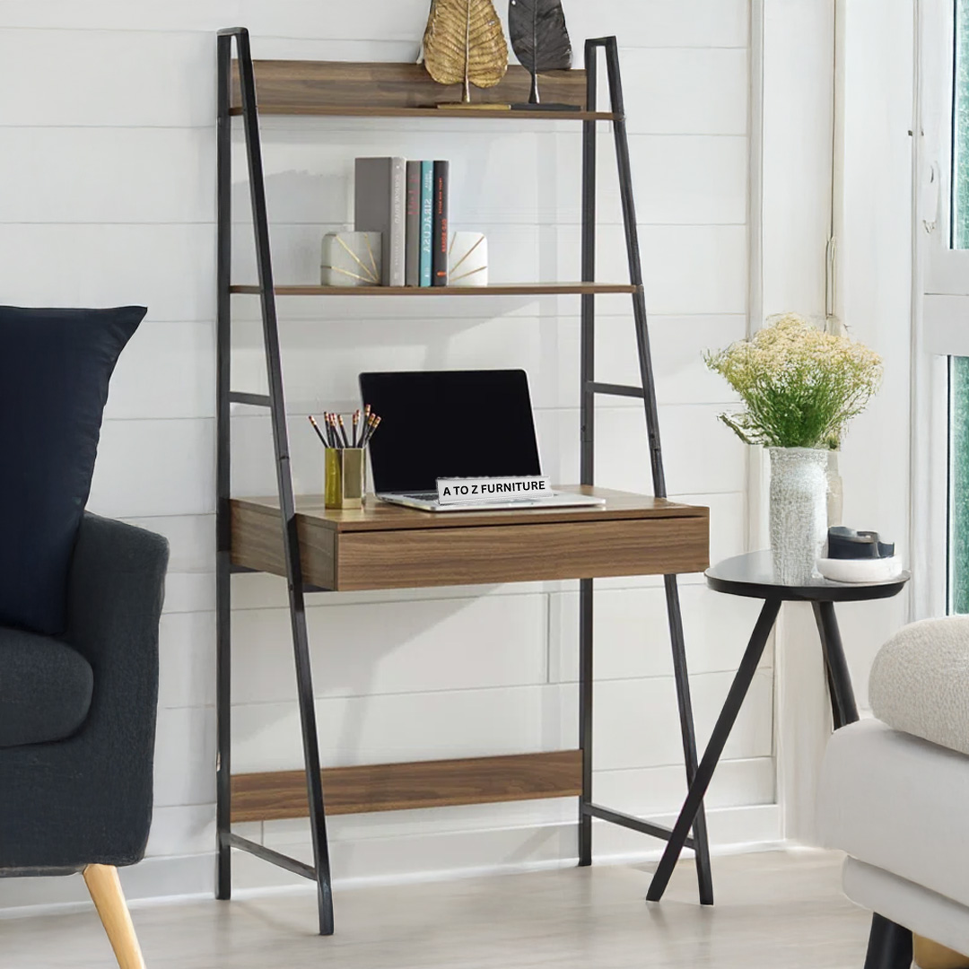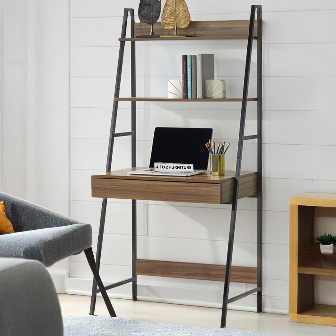 The Nova Ladder Desk with Shelf blends sleek modern aesthetics with practical storage solutions for UAE homes. Featuring a sturdy black metal frame and rich walnut laminated shelves, it offers a minimalist workspace complemented by two upper display shelves and a lower support board. Ideal for compact spaces, it’s perfect for students, remote workers, or anyone needing a tidy, vertical workstation. With built‑in anti-tip hardware and easy-care surfaces, it’s both stylish and functional—designed to elevate your living or study area.
