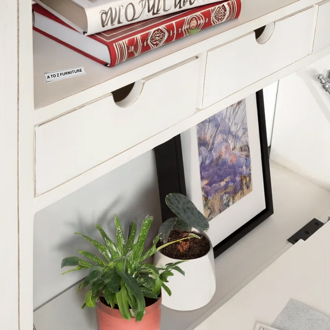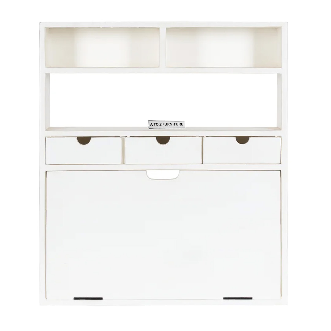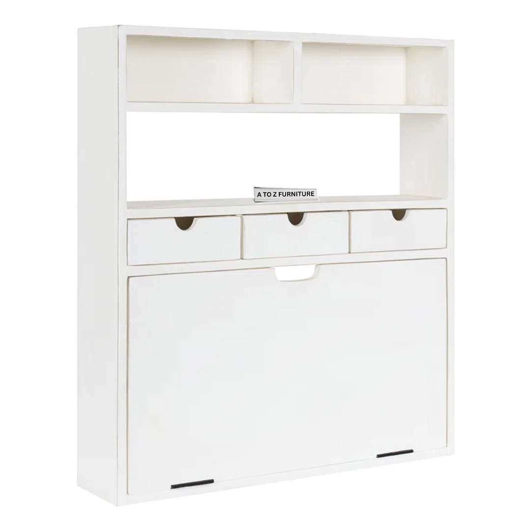Introducing the Terra Fold Wall Desk, the perfect space-saving solution for stylish and efficient small-space living in the UAE. Crafted from premium MDF Melamine/Laminated Sheet, this foldable wall-mounted workstation combines form and function. It features a spacious drop-down desktop, three front-access drawers, and upper cubbies for storage or décor — making it ideal for compact work nooks, reading corners, or even entryways.