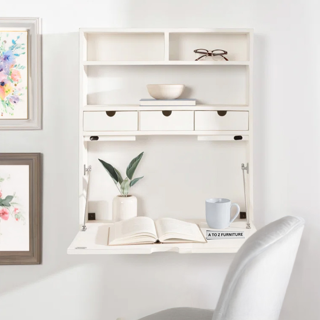 - Design: Wall-mounted drop-down foldable desk