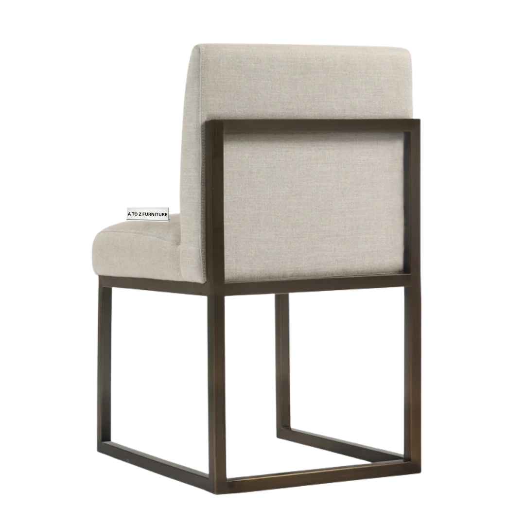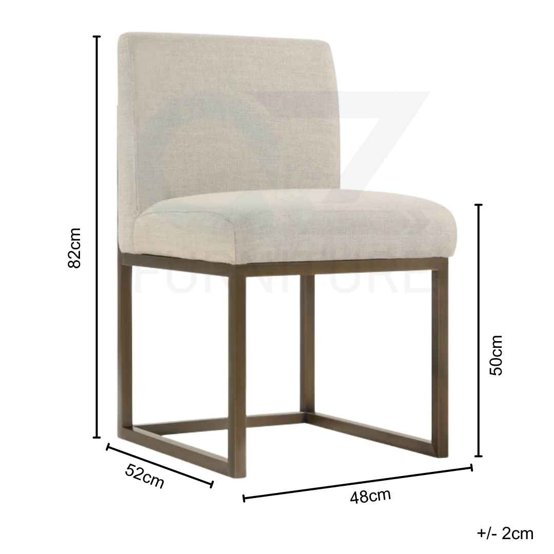 Designed as a modern accent chair, it combines a solid wood frame with soft beige linen upholstery on the seat and back for lasting comfort and refined simplicity. Finished with elegant brass details, this chair is perfect for offices, dining rooms, or as a statement accent piece to effortlessly refresh your space.
