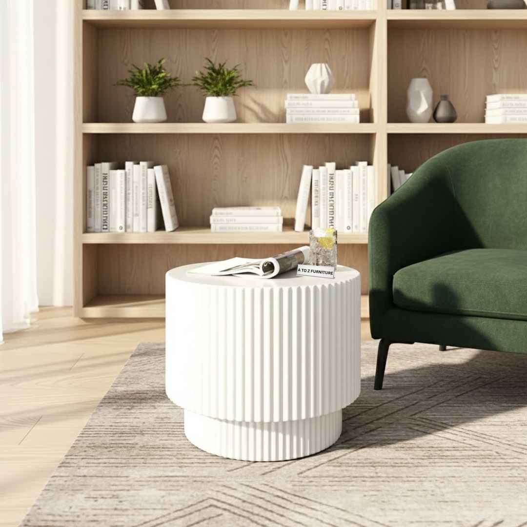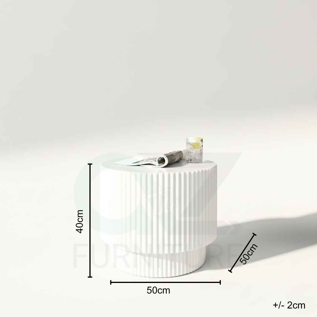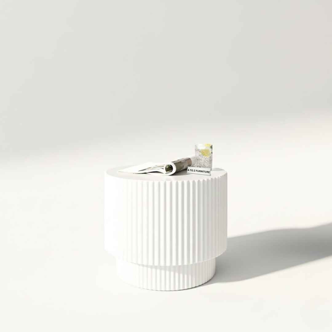 The Vero Side Table blends modern design with everyday functionality, making it a perfect modern side table for contemporary interiors. It features a refined ribbed texture, a smooth round top, and a sturdy cylindrical base that creates a clean, sculptural look—ideal as an accent side table for living rooms and bedrooms.