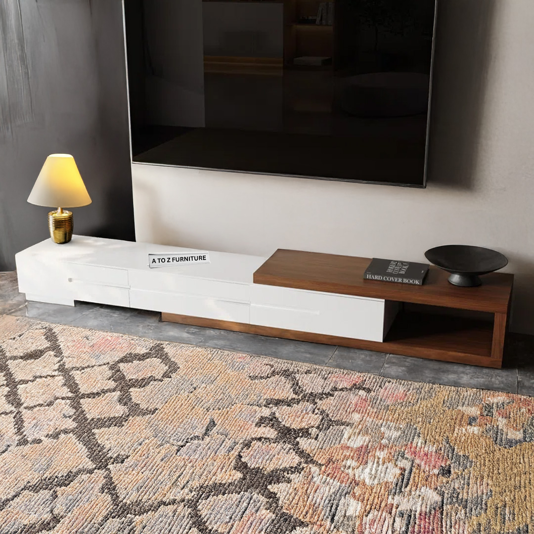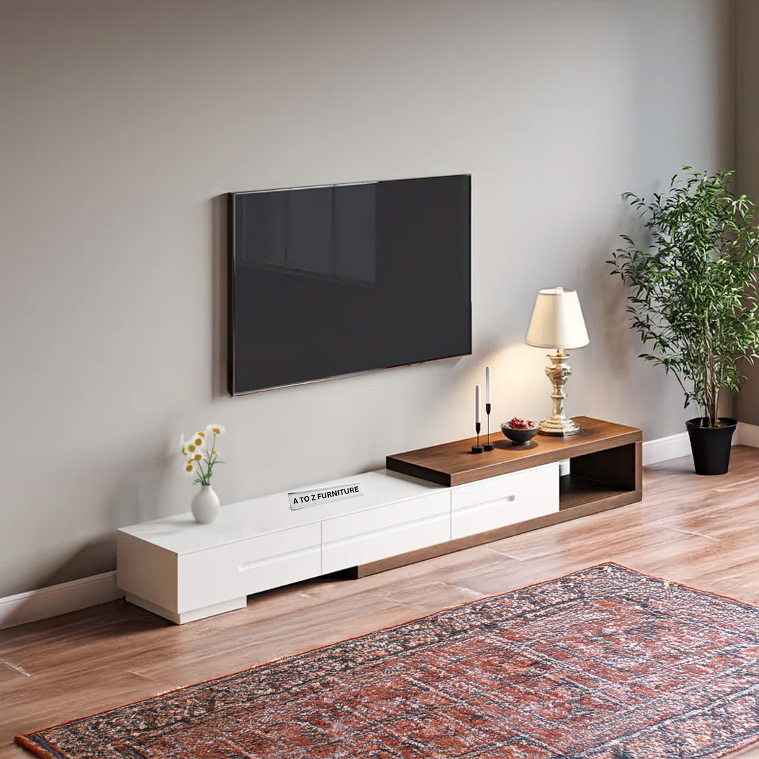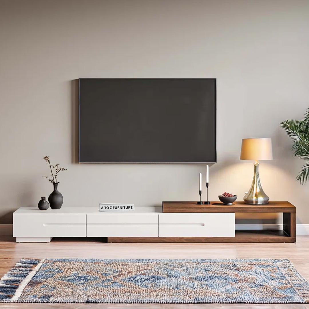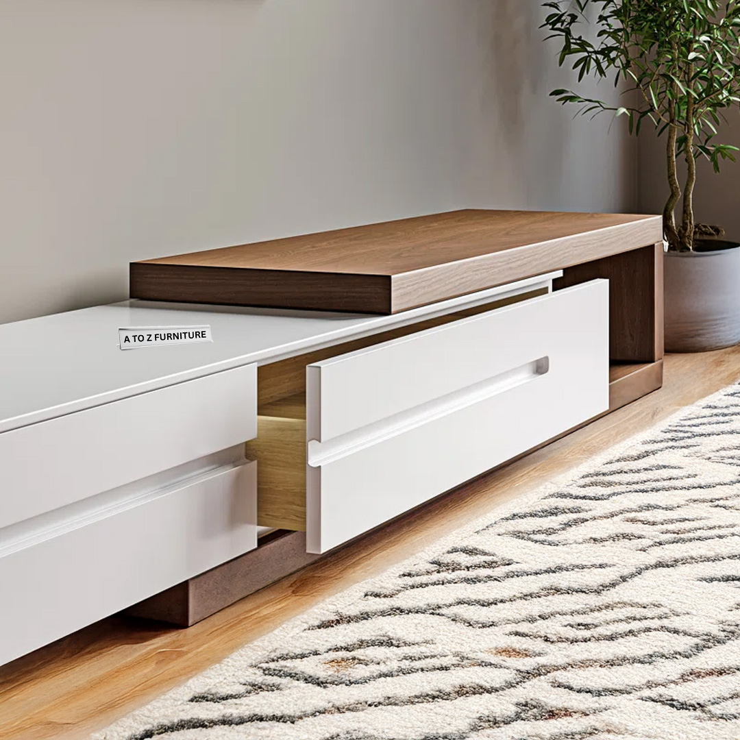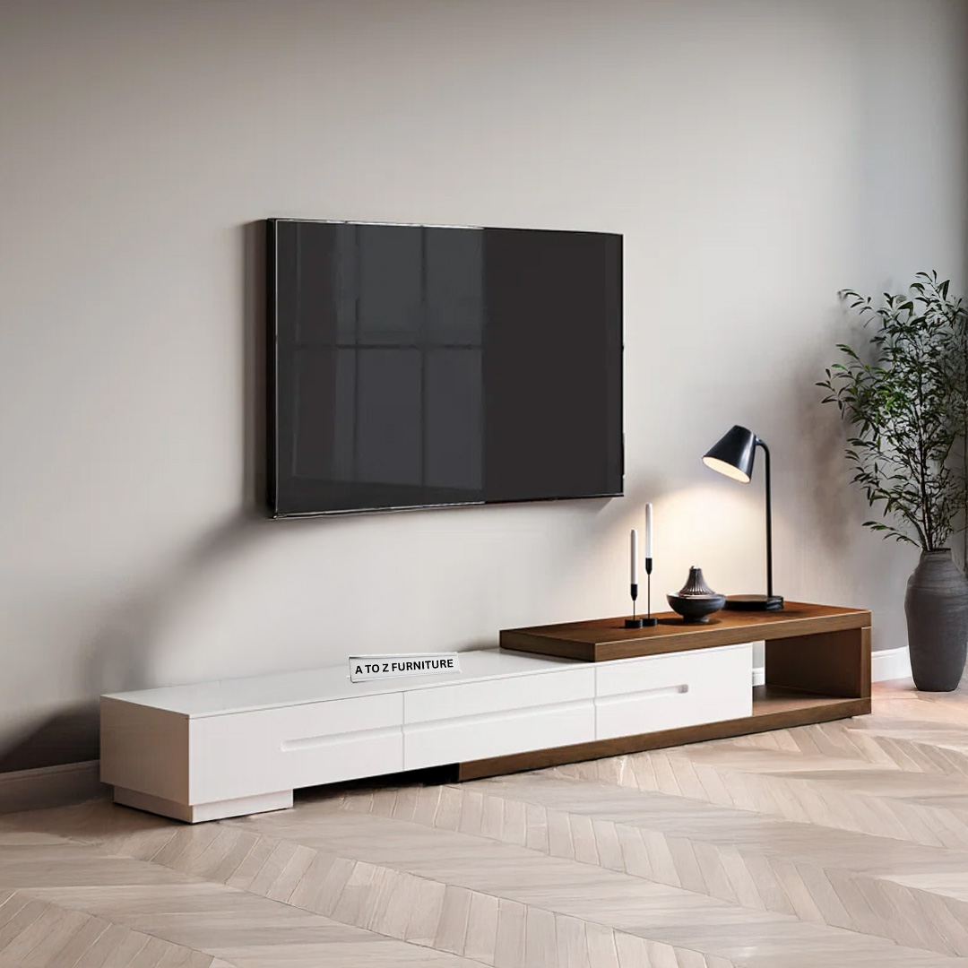 Sleek, functional, and boldly modern — the StratoSlide Extendable TV Unit by A to Z Furniture is designed to redefine your entertainment space. With its spacious extendable body and minimalist silhouette, this unit is perfect for larger rooms or open-plan living areas. The clean linear profile in rich wooden tones blends style with adaptability, while its low-height structure delivers a sleek, floating aesthetic.