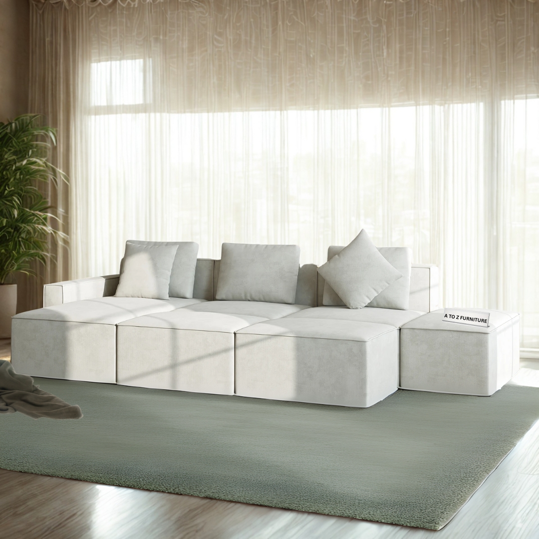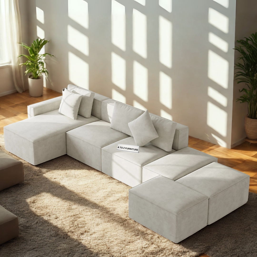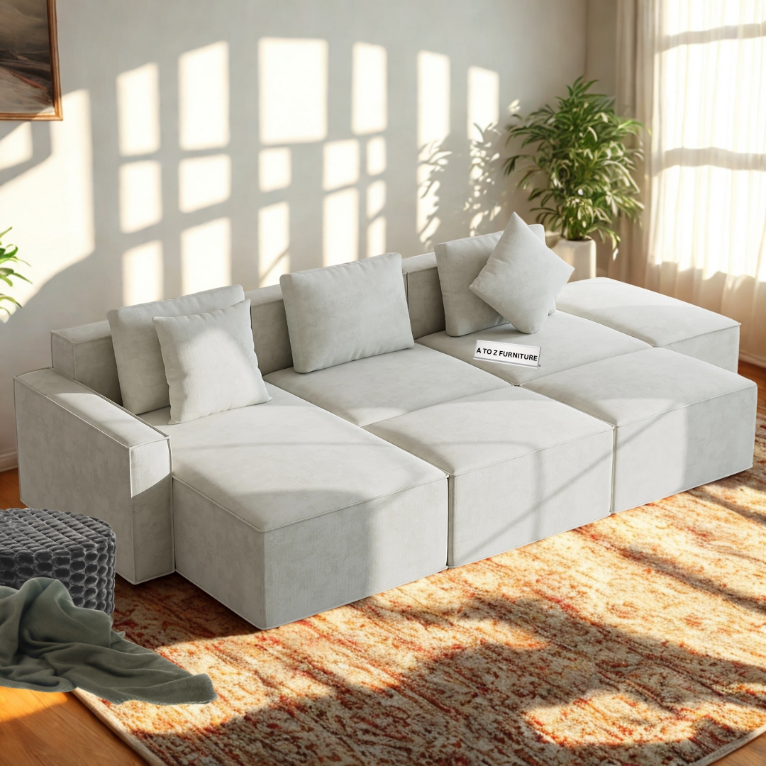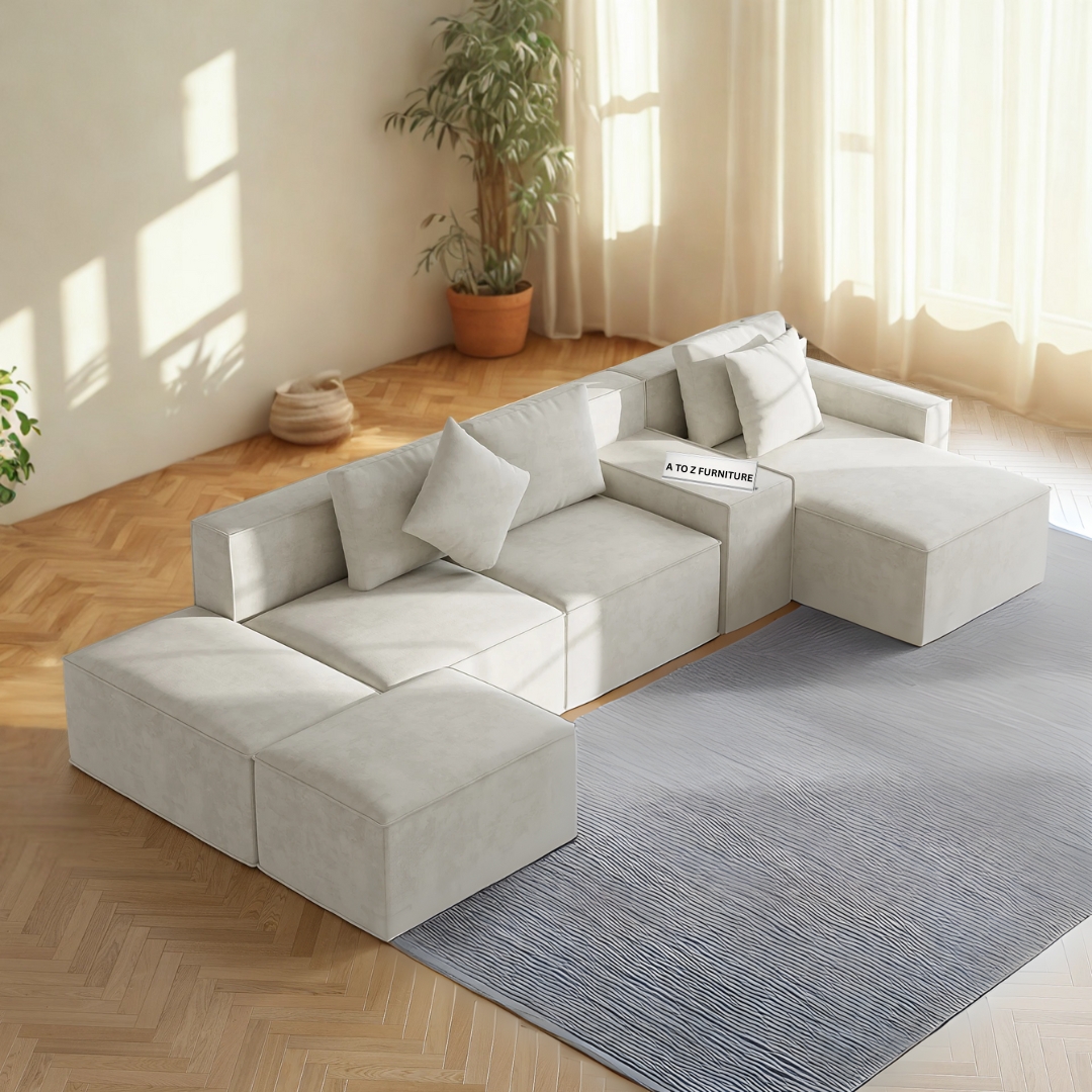 Transform your living space with the Oslo Modular Sectional Sofa – a harmonious blend of comfort, versatility, and modern elegance. Upholstered in luxurious fabric, this 6-piece set offers a customizable layout that adapts effortlessly to any room configuration. Its deep seating, plush cushions, and soft-touch texture provide the ultimate relaxation experience. Whether you're hosting guests or lounging solo, the Oslo sectional delivers style and function in equal measure.