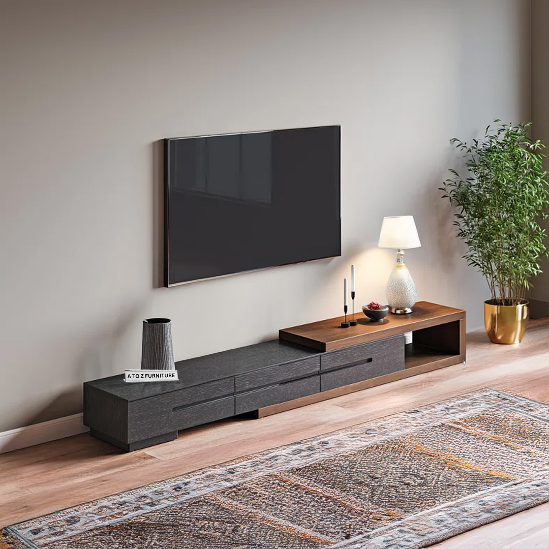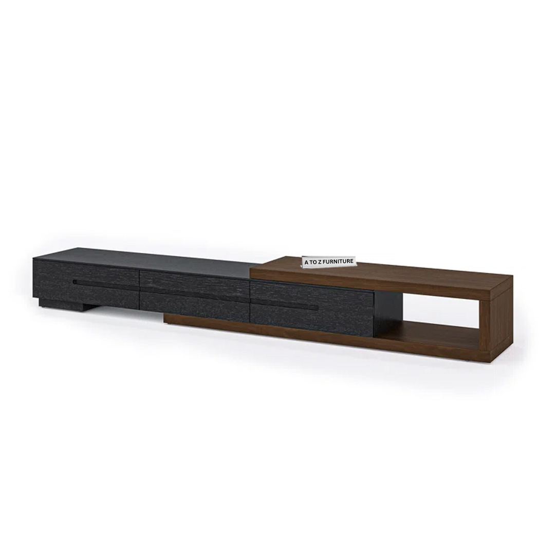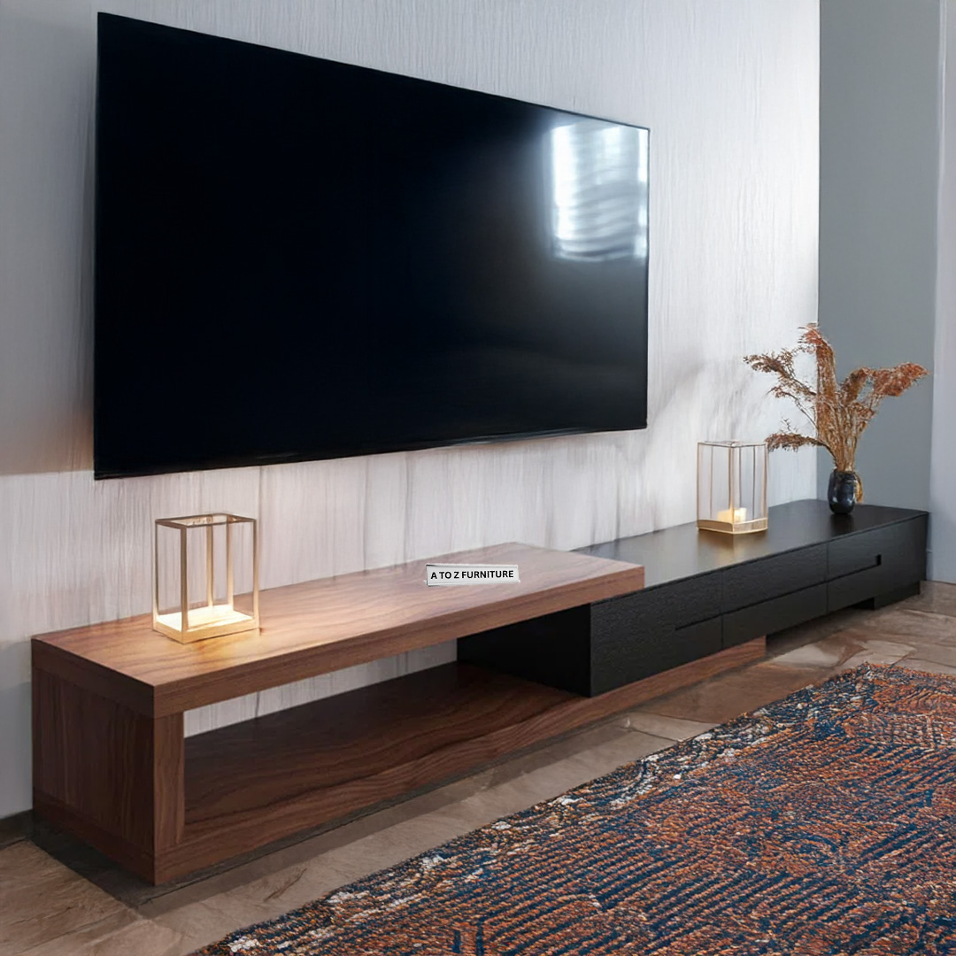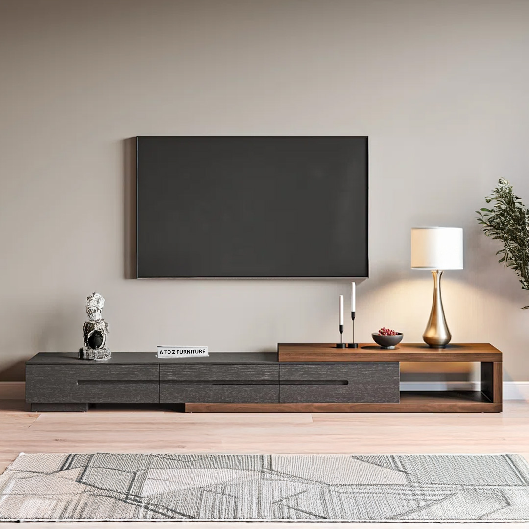 Sleek, functional, and boldly modern — the StratoSlide Extendable TV Unit by A to Z Furniture is designed to redefine your entertainment space. With its spacious extendable body and minimalist silhouette, this unit is perfect for larger rooms or open-plan living areas. The clean linear profile in rich wooden tones blends style with adaptability, while its low-height structure delivers a sleek, floating aesthetic.