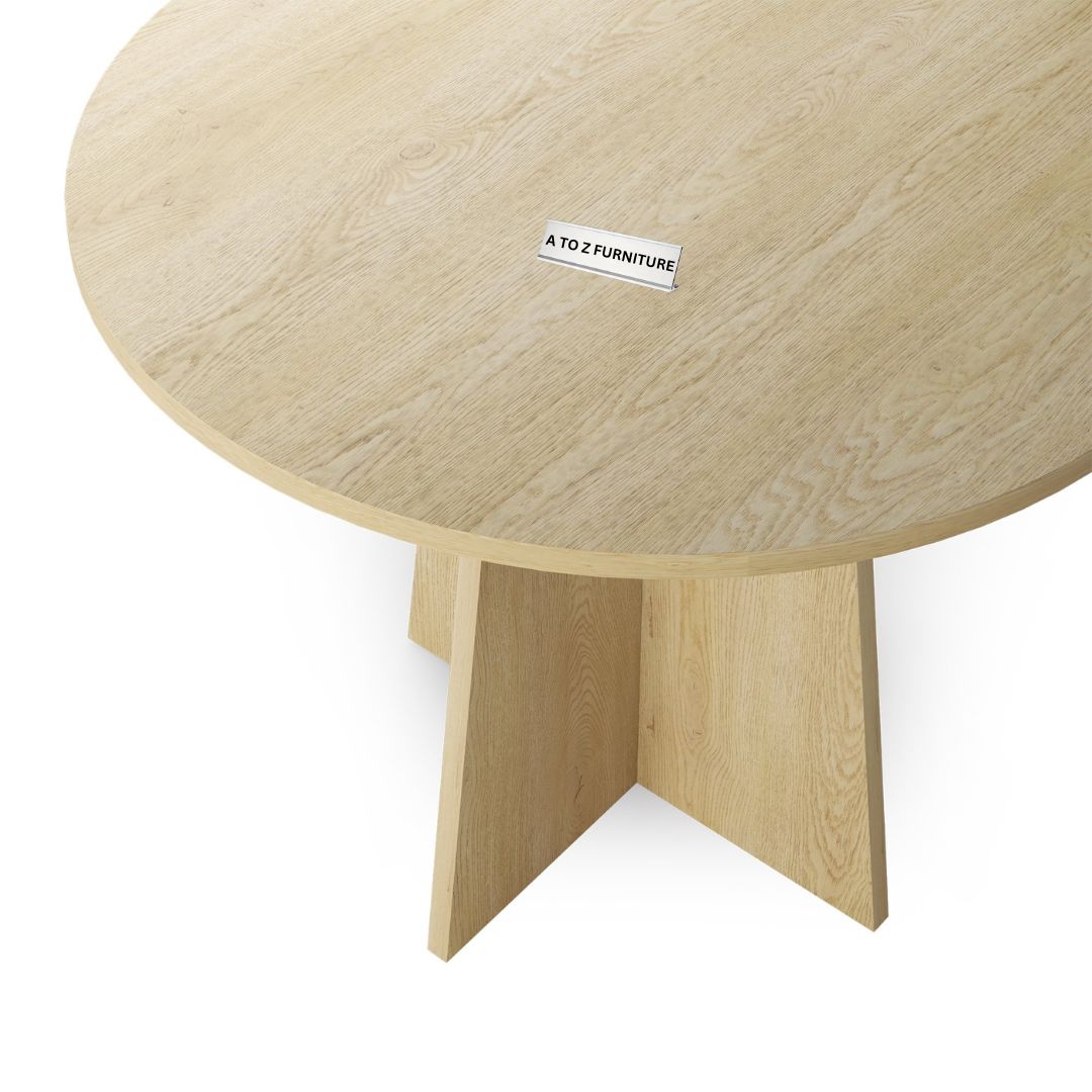 Introduce timeless warmth and contemporary charm to your dining space with the Olivaro Round Dining Table. Featuring a smooth circular top in a natural oak finish and a unique cross panel pedestal base, Olivaro offers the perfect balance of form and function. Its compact size makes it ideal for apartments, breakfast corners, or cozy dining areas, while the light wood tone blends seamlessly with Scandinavian, modern, or minimalist interiors.