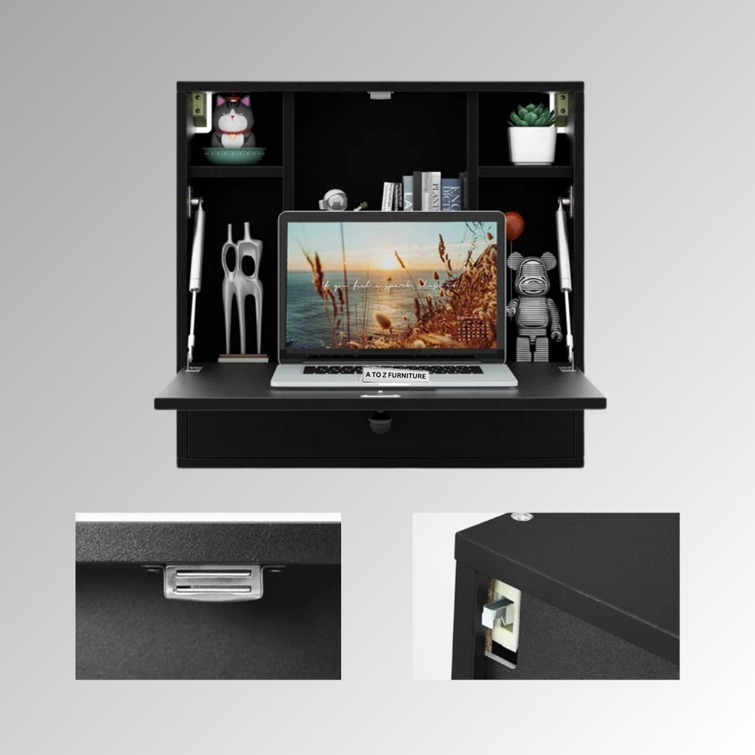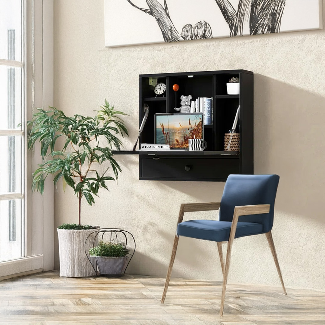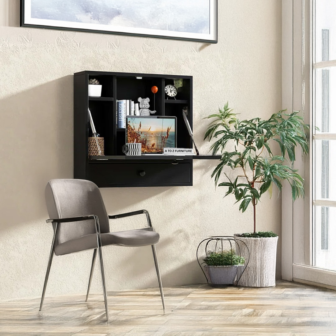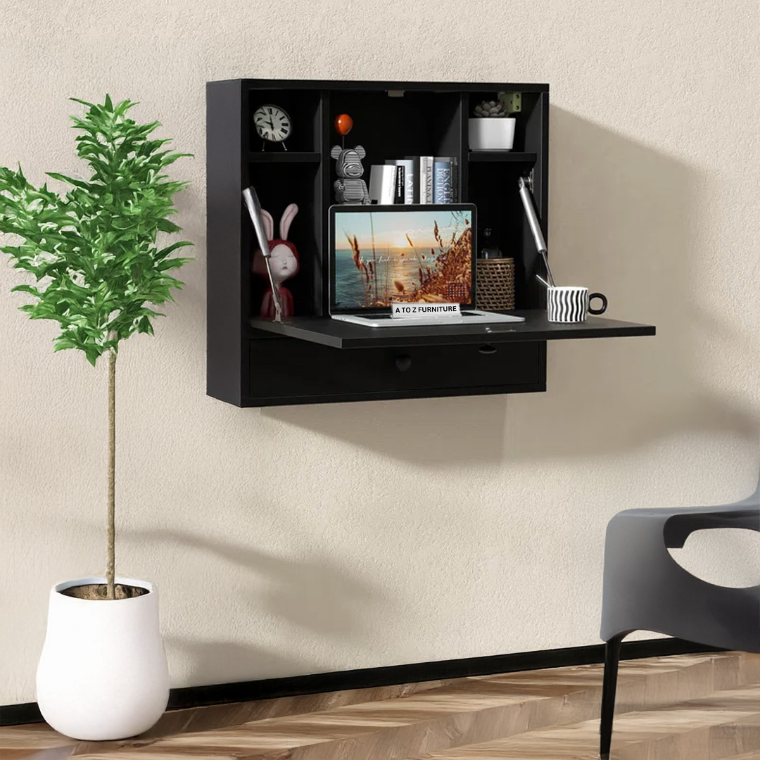 - Design: Wall-mounted fold-down desk