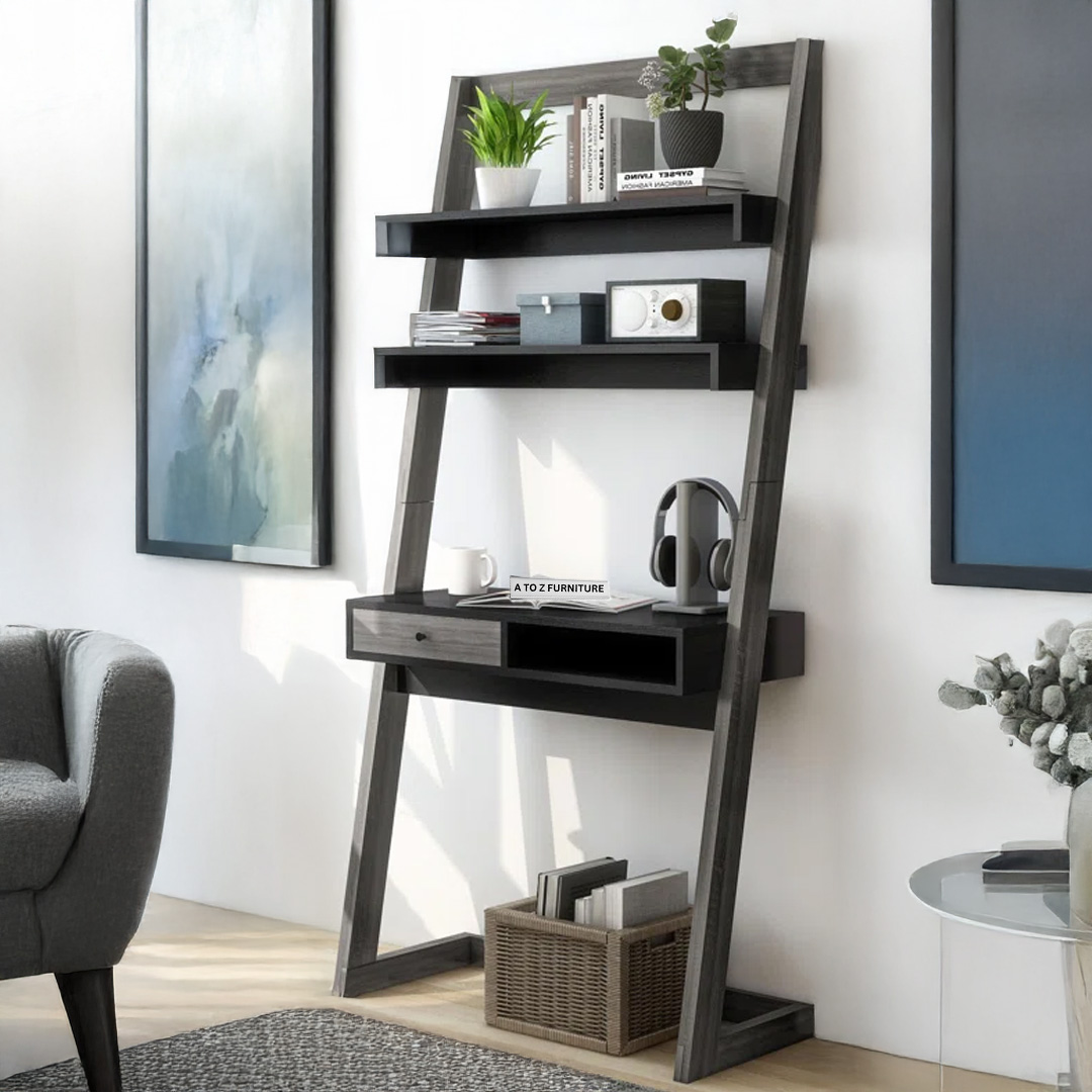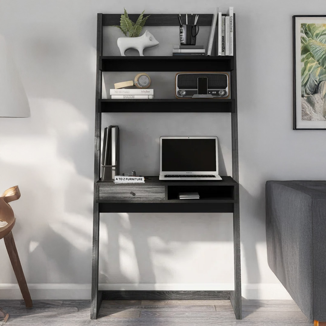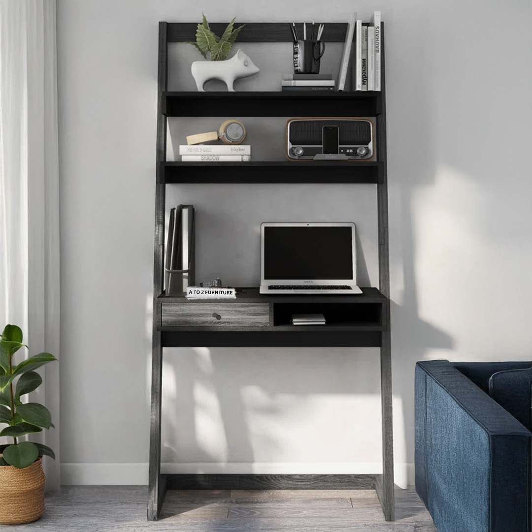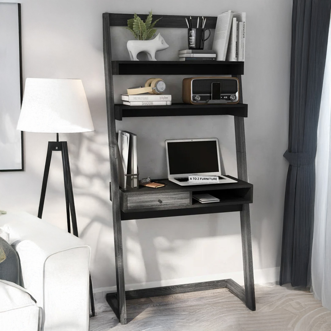 Elevate your home workspace with the Celestial Leaning Desk a harmonious blend of rustic charm and modern practicality. Featuring a sleek leaning ladder frame and two-tone solid mdf surfaces, this desk saves precious floor space while offering desktop, shelf, and drawer storage. Its clean sled base and angled supports provide stability and style, making it ideal for UAE homes, student rooms, or compact offices. Equipped with built-in cable management and ready-to-assemble delivery, it's the perfect space-saving star for modern living.
