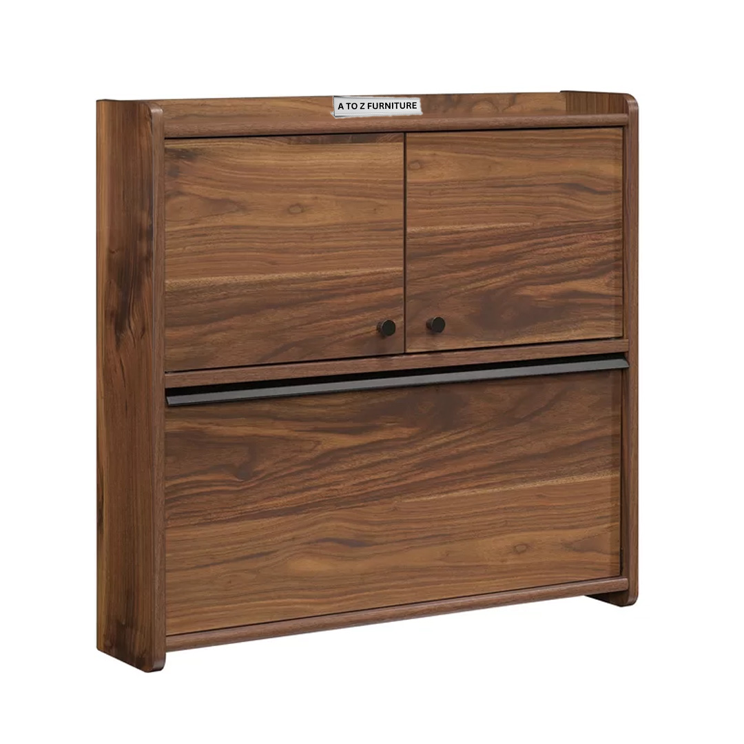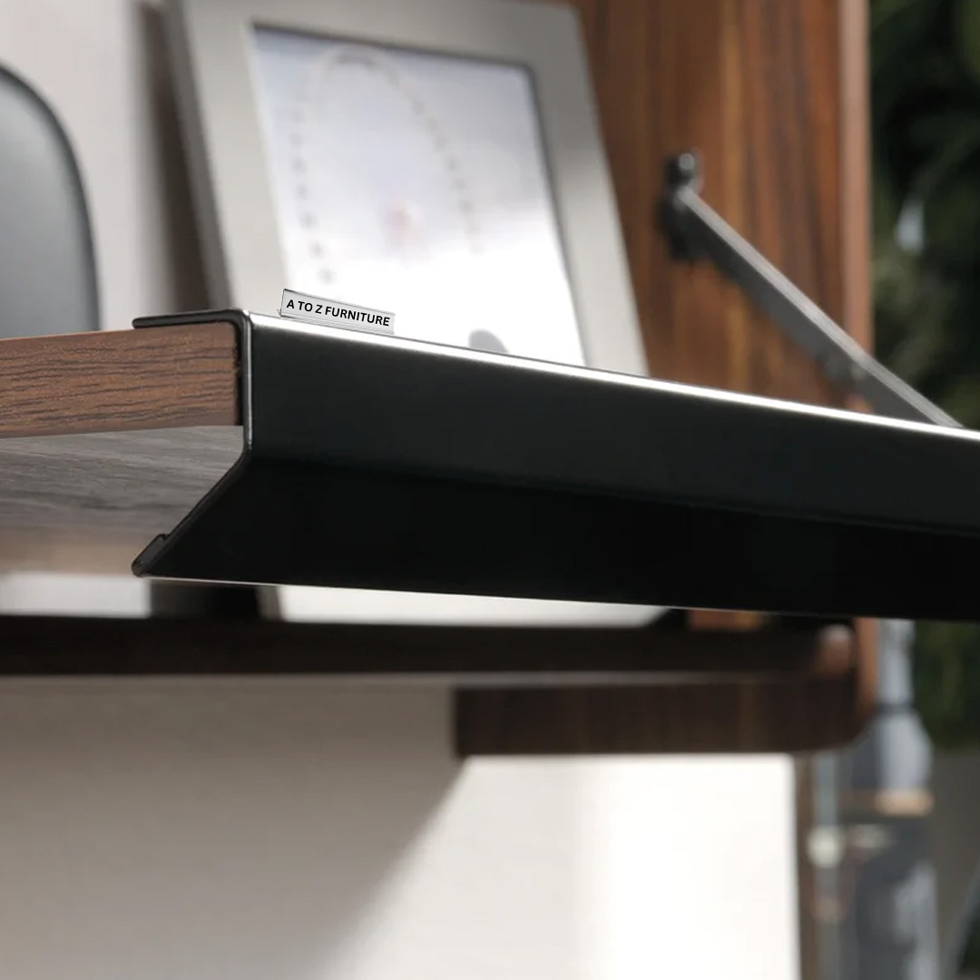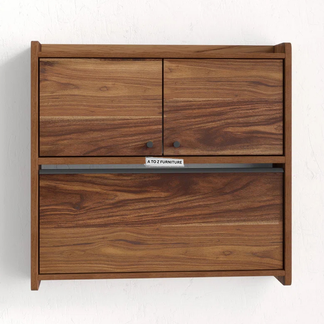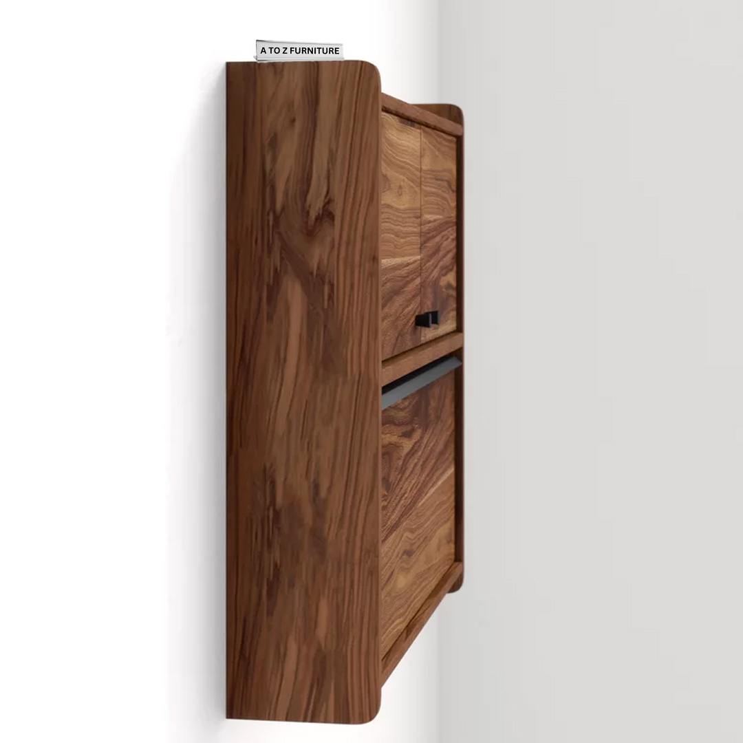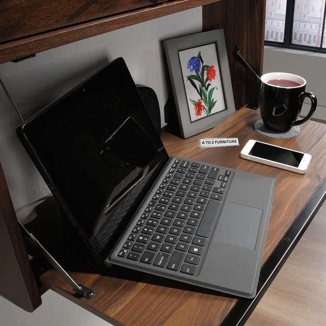 Transform unused wall space into a stylish workspace with the Echo Wall‑Fold Desk. This sleek floating fold-down desk in rich walnut finish discreetly tucks away when not in use, ideal for UAE homes seeking space-efficient solutions. Behind its elegant cabinet doors lies a multitasking interior featuring a cork tack board and storage cubbies. Perfect for paying bills, working from a laptop, or managing personal projects, Echo combines charm and function in a compact design—complete with cable management and easy installation on any stud.