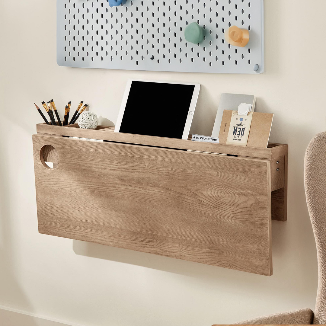 The is a sleek, modern fold-down workstation designed to maximize utility in the smallest spaces. Ideal for UAE apartments, bedrooms, or multipurpose corners, this floating desk mounts directly to your wall, freeing up floor space while offering a functional work area. With its clean white finish and practical storage cubbies, Skymount is perfect for light work, laptop use, or homework stations in minimalist settings.